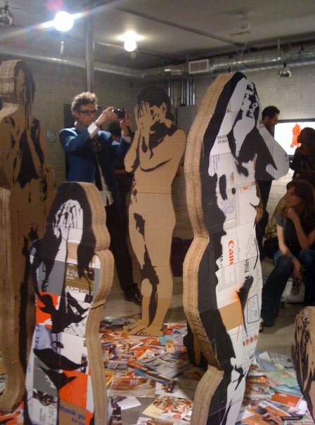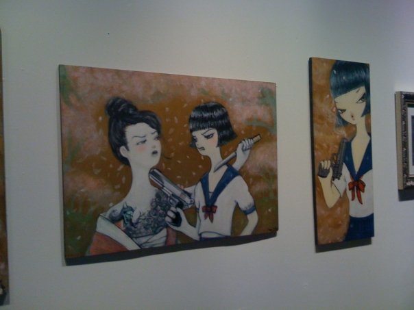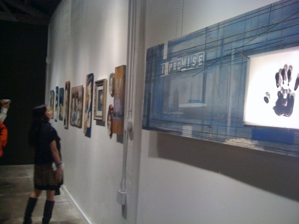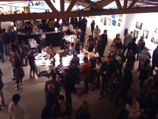 So I will be part of the next Create:Fixate event on Saturday, June 27th. This is a one-night art/music/fashion event that happens every other month in downtown LA. It started totally as a grass-roots event by some local LA artists and it’s now blossomed into quite the happening scene. I’ve been involved in a few shows already, but not in the new venue. I’m all done with my paintings and just have to put wired on them stuff for the hanging Monday. Here are some pics from the last C:F event I went to back in March of ’09: