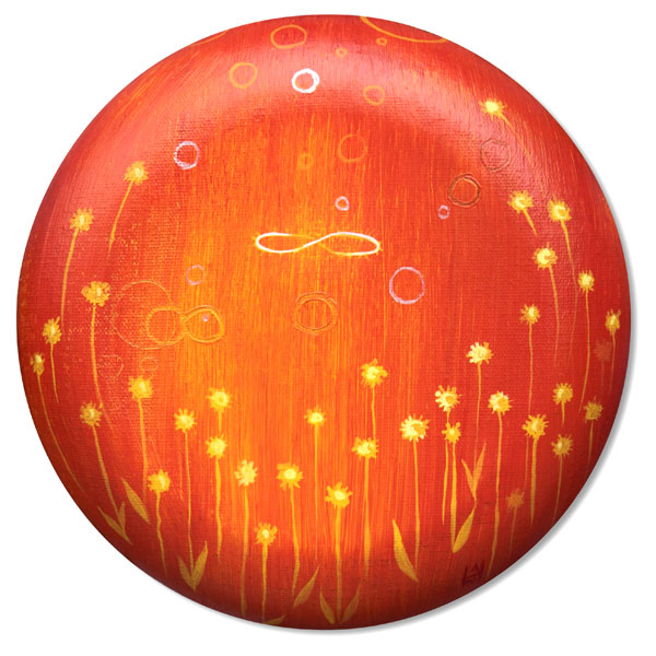 I was able to complete a few new pieces for the show, and am excited to show paintings done on round canvas for the first time. Not sure why I never thought to do it before, but it seems especially apropos for this series since Tama means “ball” or “sphere” in Japanese. Keeping the roundness going!