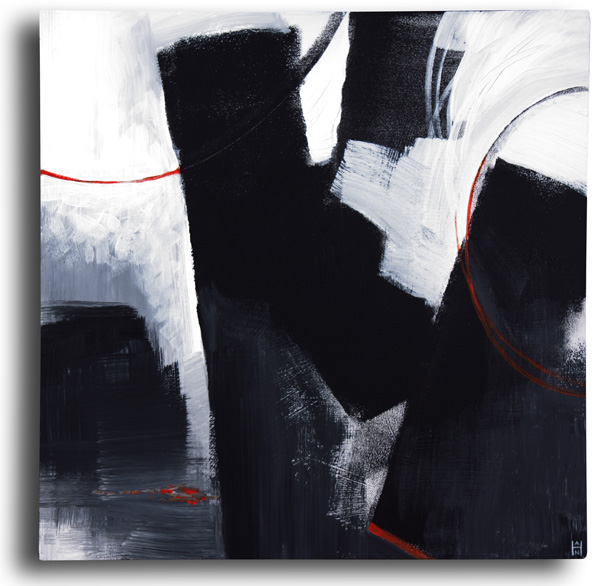 I like these bold blocks of black and white with the red arcs. I think of a winter-y scene of tree trunks and snow.