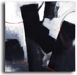 A couple of new paintings (finally!) for fall. I’ve always admired the work of Franz Kline and I tried to capture some of that boldness and graphic impact while inserting elements that I’ve developed with the TAMA series. The series of arcs slicing through the larger fields remind me of orbits and trajectories, representing how events and lives intersect in unexpected ways all the time. Someone told me that these paintings remind them of looking out a car windshield on a rainy day, with shapes reminiscent of cars, buildings, and trees. I’m curious to know what else people see?