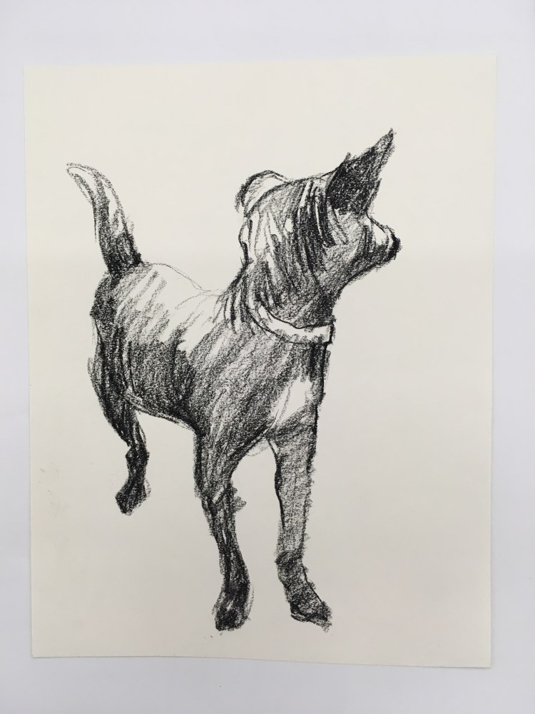 “Venus”, charcoal on paper. One of the dogs rescued from the slaughterhouses of Cambodia by the Animal Hope and Wellness Foundation. She was one of the few skittish ones.