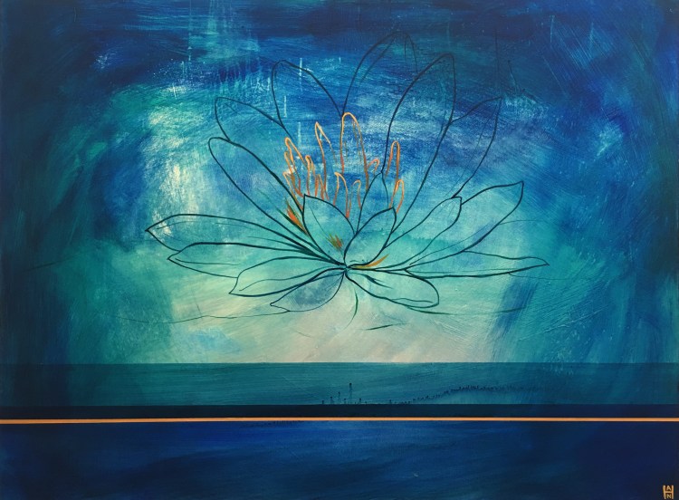 Finally done! “Ascension”, 36″x 48″, acrylic on canvas #LBCart #lotusflower #lotus #painting #longbeachmade #FlowerArt #flowers