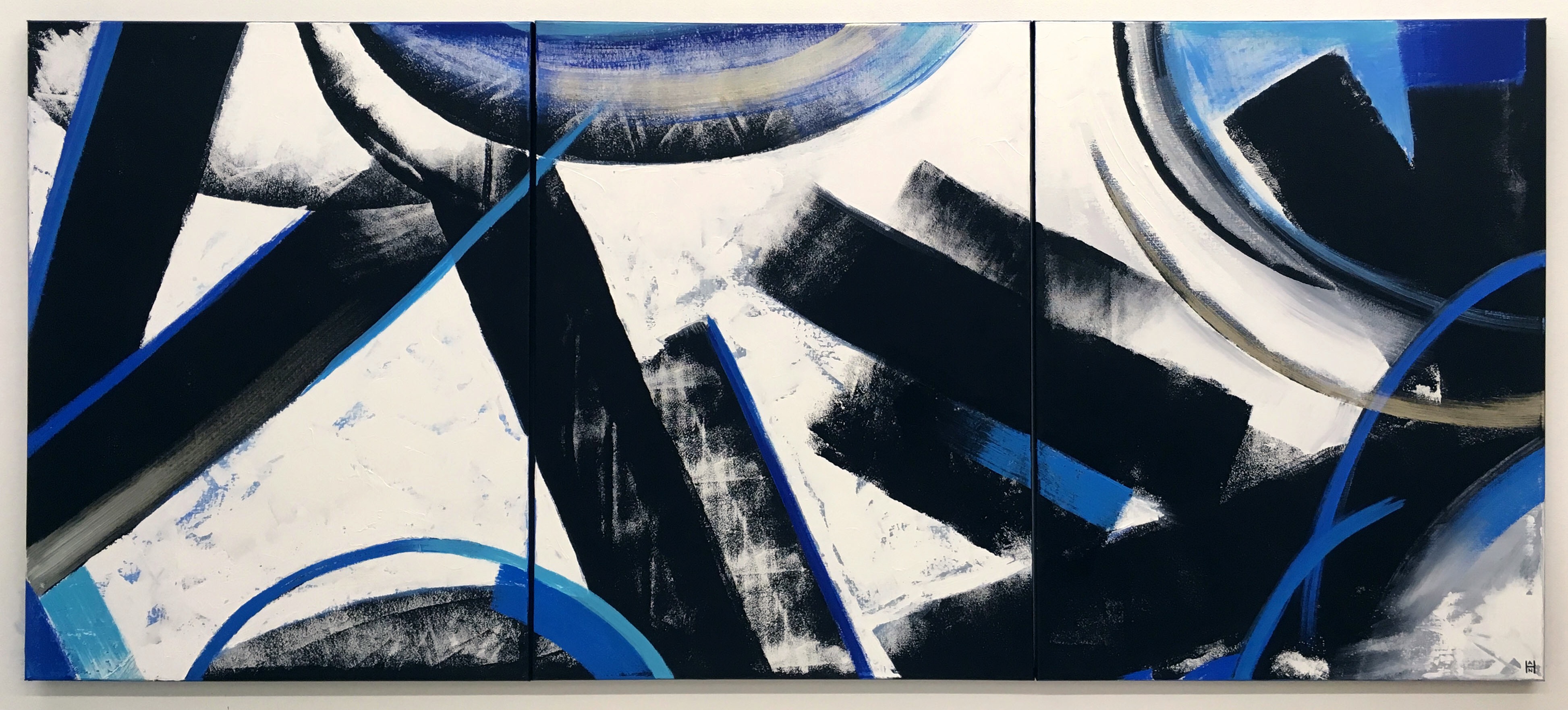 It is done. “Halcyon”, acrylic on canvas, 3 36″x48″ panels. It was a joy to paint and I thank my wonderful clients so much for just letting me do my thang πβ€οΈπ #longbeachmade #longbeachart #abstractart #abstractpainting