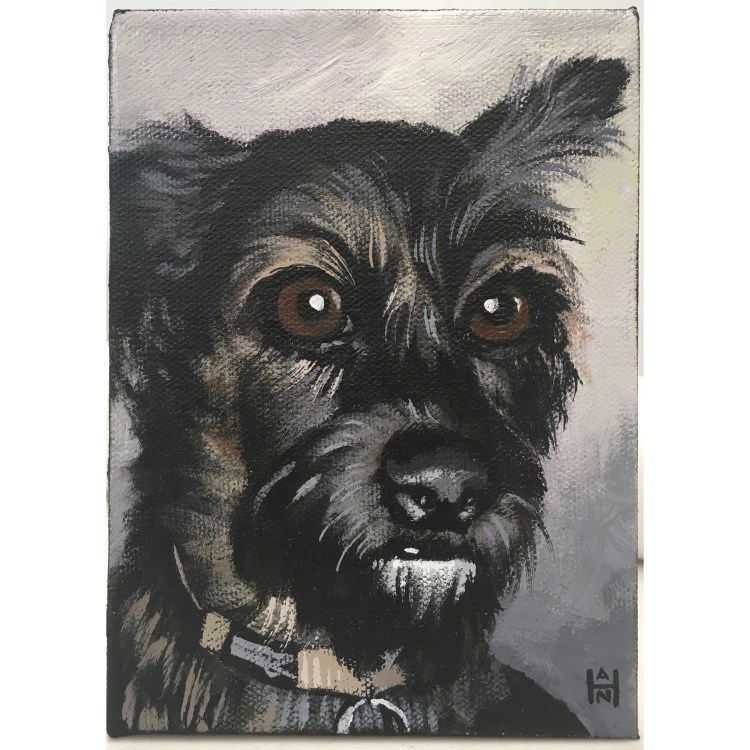 Commissioned piece: “Broadway”, 5″x7″, acrylic on canvas. #dogart #dogartist #dogartwork #dogartworkofinstagram #dogartworks #madeinlongbeach #longbeachart #longbeachartist