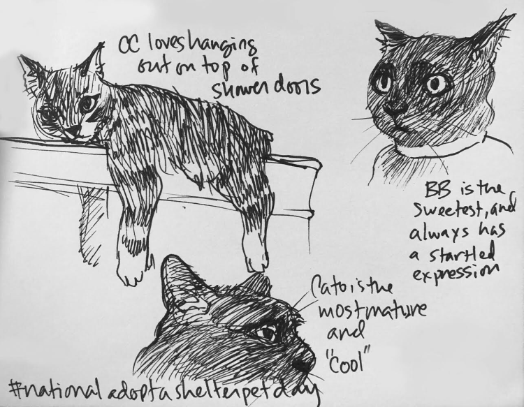 On this #nationaladoptashelterpetday I did some quick fun drawings of my shelter/rescue babies ❤️😻 #adoptdontshop