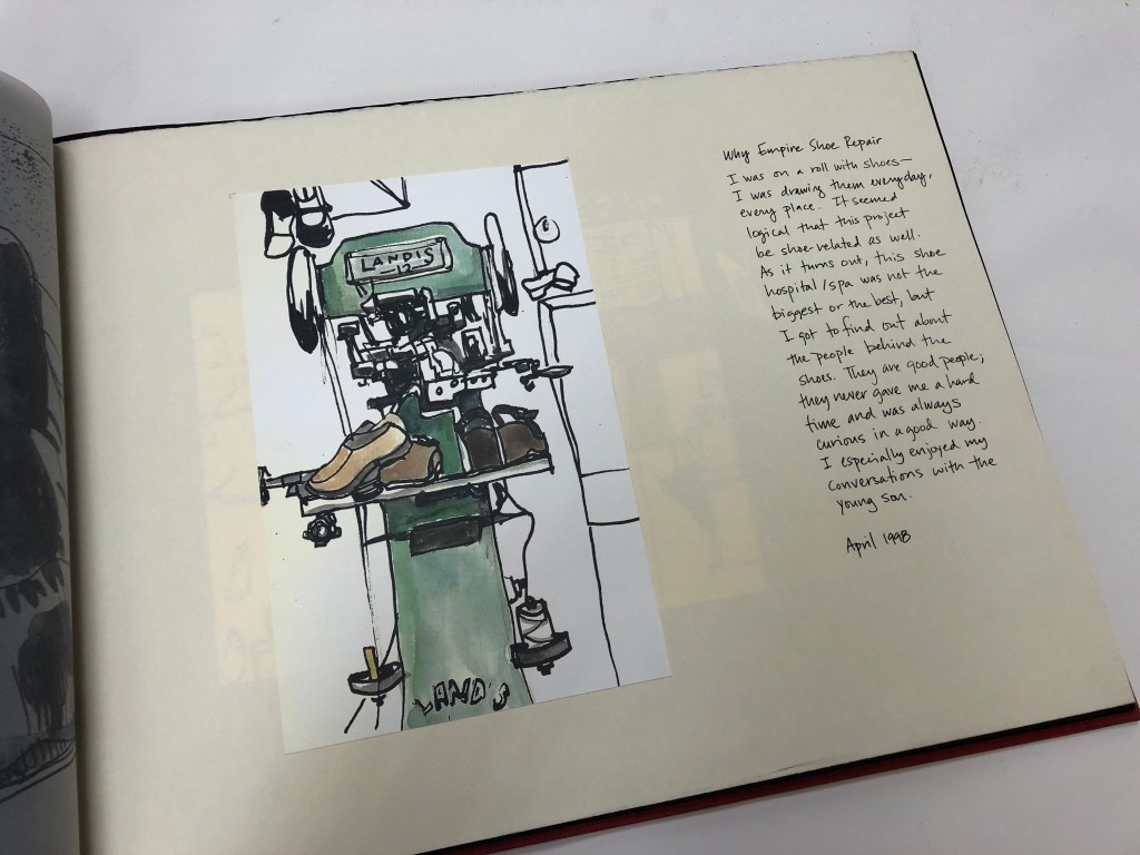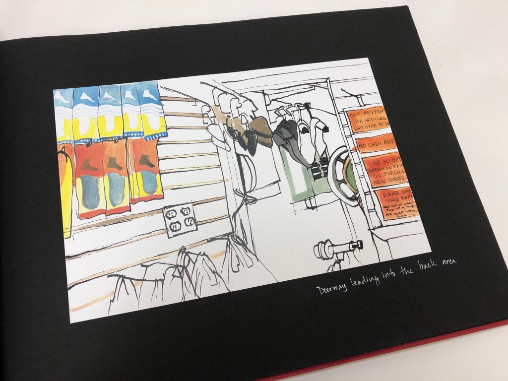 My shoe repair store sketches were used for a larger handmade book project, which will also be on view Flatline gallery (https://www.flatlinegallery.com) on 3/7! #sketchbook #drawing #handmadebooks