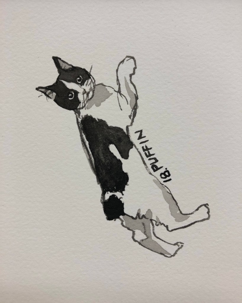 Day 18 “31 Felines”: Puffin! My friend @cherieinoc rescued her from her workplace parking lot. Puffin had to get her tail amputated due to an infection, but it just made her cuter! Follow her and her brother on @puffinandsunny Hopefully by the end of 31 days things will be meowch better. #fdala #catart #longbeachart #longbeachartist #adoptdontshop