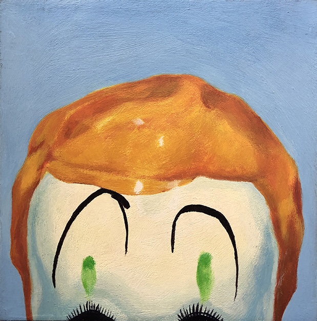 From my Alter Egos series from the turn of the last century: “Klown”, 6×6, acrylic on wood panel. #acrylicpainting #creepydolls #longbeachartist #dollpainting