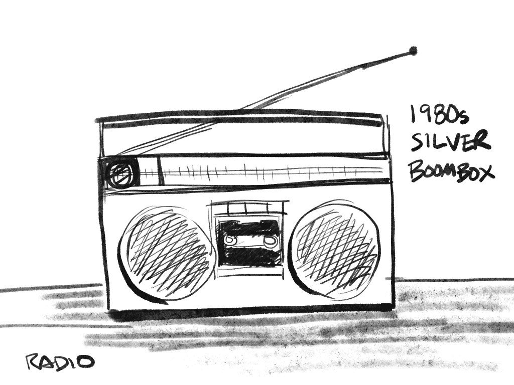Procreate for iPad ink brush 4: Tinderbox. This silver boom box with tape deck got me through my high school years in the 1980s. I also use the Apple Pencil and the Paperlike screen cover for optimal digital drawing. #inktober2020