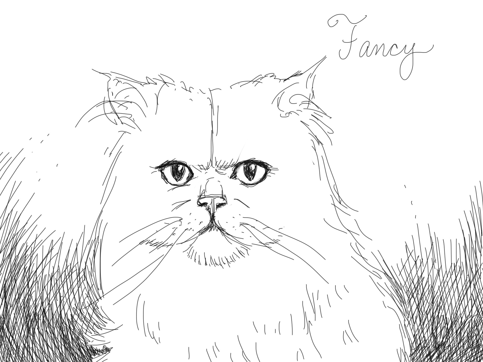 Procreate ink brush 7: Fine Tip. Can’t think of anything fancier than the Fancy Feast cat! When they say fine tip, they’re not kidding around—this was the largest size setting on this brush. 😮 I also use the Apple Pencil and the Paperlike screen cover for optimal digital drawing. #inktober2020