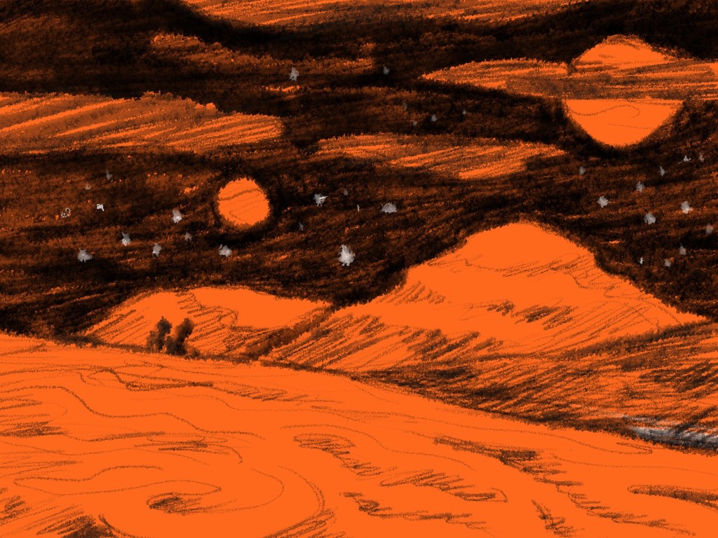 Procreate drawing brush 1: Little Pine. This was another tough one; I ended up with a lonely interstellar scene. Seemed appropriate to add color to this one. I also use the Apple Pencil and the Paperlike screen cover for optimal digital drawing. #inktober2020 #digitalart #digitalillustration #digitaldrawing