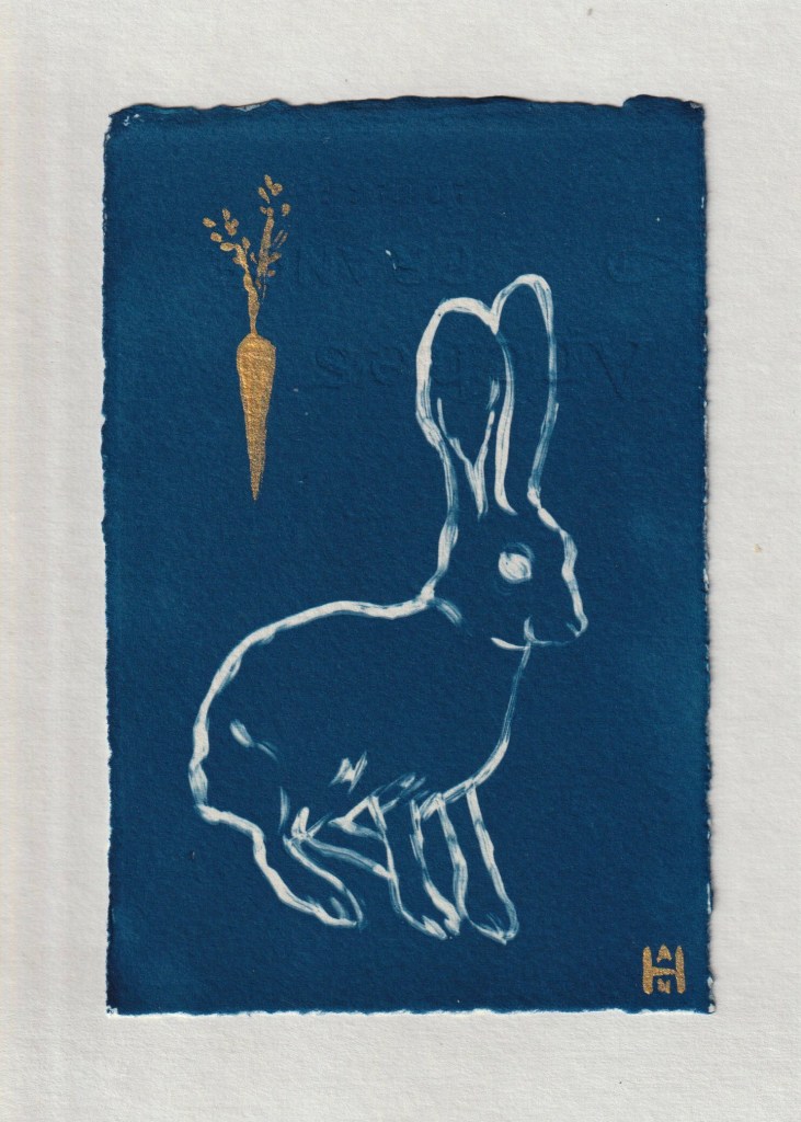 “Bunny Dreams”, cyanotype embellished with acrylic paint, 5×7 (backing board size), $25. DM me off interested! #cyanotype #cyanotypeprint #bunnyart #rabbitart