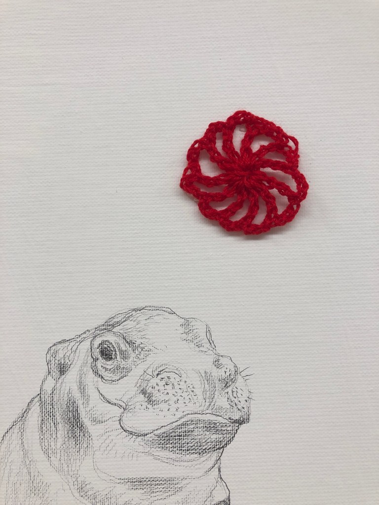 First crochet piece makes an appearance! Day 12 of my project for Art.Happens. #fad2021