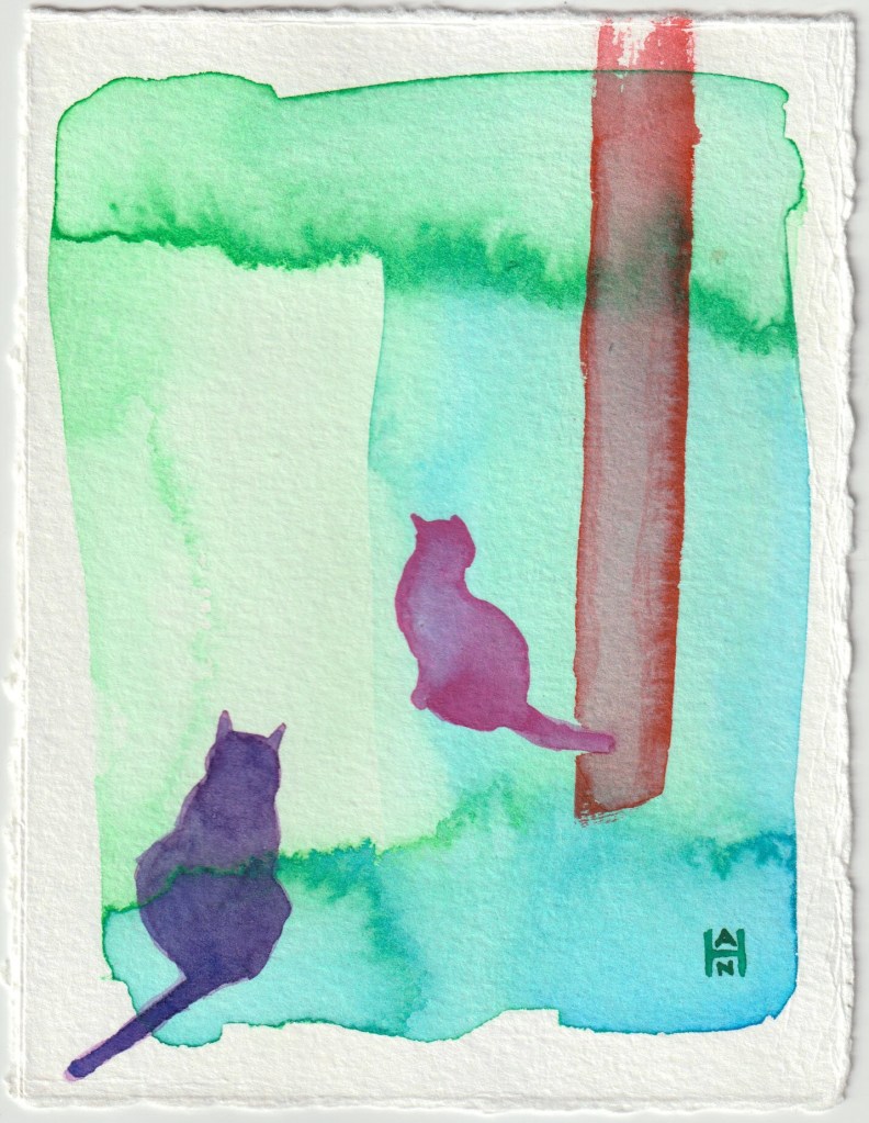 “Companions”, 4.5” x 6”, watercolor on paper. Inspired by my kitties today for my “Art for $20.21” project. See my website for more info. #watercolorpainting #artfor2021 #catart #catwatercolor #longbeachart #longbeachartist