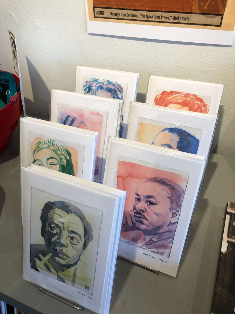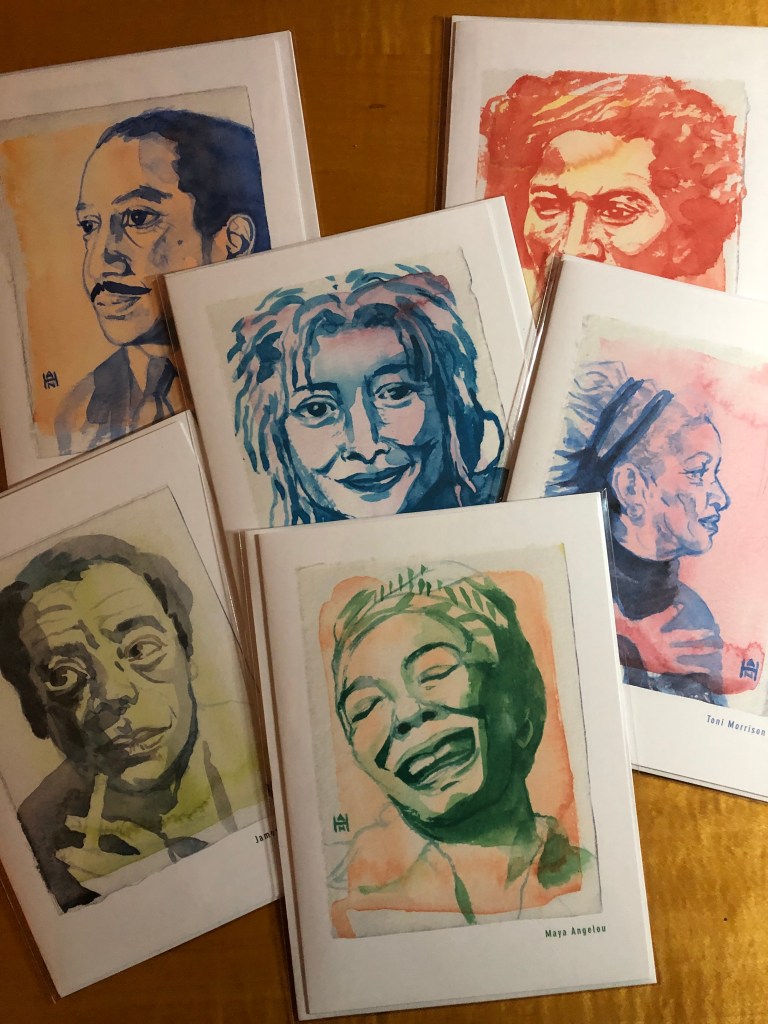 The Black Writers portraits are now available as cards @patmbooks on 4th St! ❤️ If you’re not local and would like to order some, DM me! #blackwriters #writerportraits #mayaangelou #jamesbaldwin #tonimorrison #alicewalker #langstonhughes #frederickdouglass