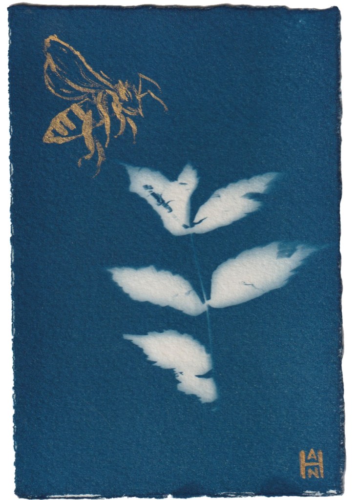 “Golden Buzz”, 3.75”x5.5”, cyanotype—part of my “Art for $20.21” project. Check out my website for more info. #artfor2021 #cyanotypes #longbeachartist #longbeachart #beeart #beeartwork