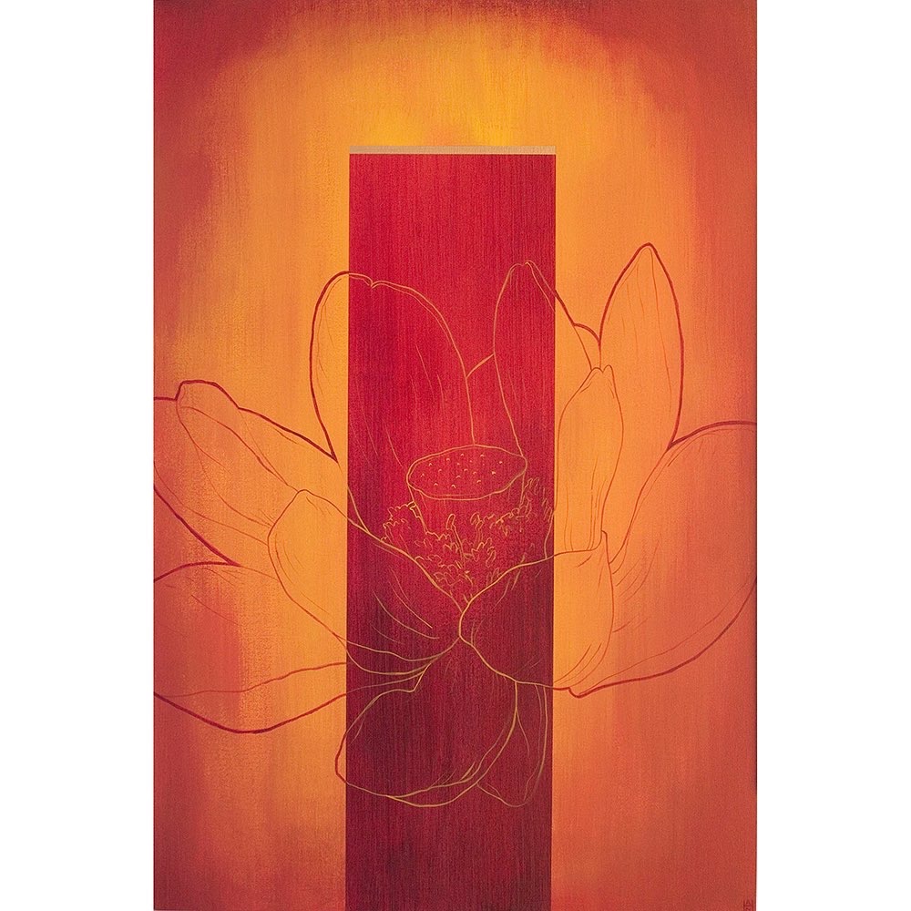 “The Floating World”, “Tall Lotus 2”, and “Koan 1” are from my Graphic Flora series, featuring lotus flowers, which are symbols of enlightenment. I can’t think of a more enlightened pursuit for humans than peace. The show will raise funds for Ukrainian refugees, the International Woman’s Peace Group, as well as Greenly Art Space.