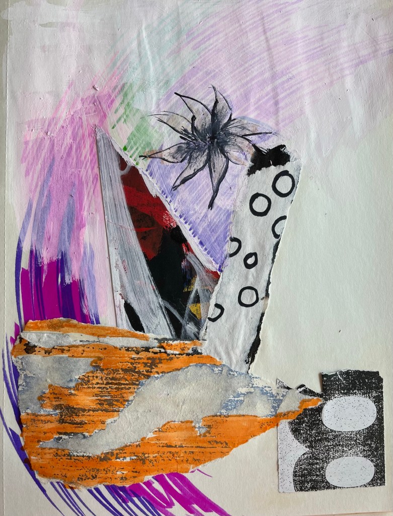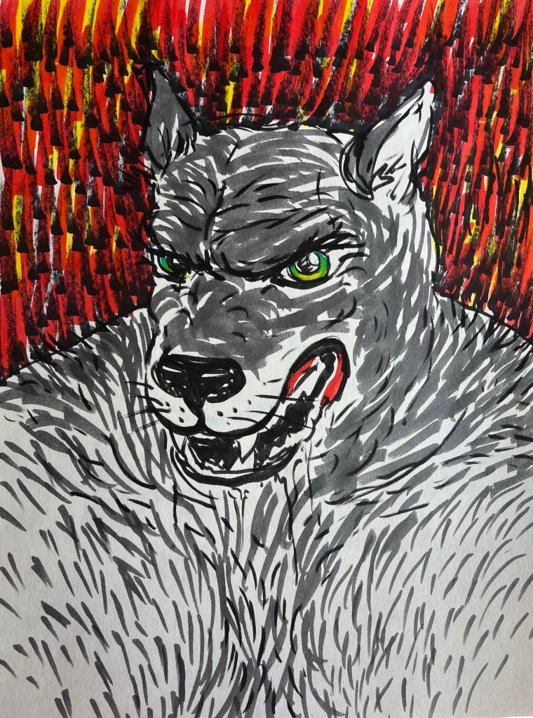 The first meeting back from winter break and it was quite a good turnout! I did a drawing of a werewolf and did some collage with materials brought by Dave Conrey—a good night!