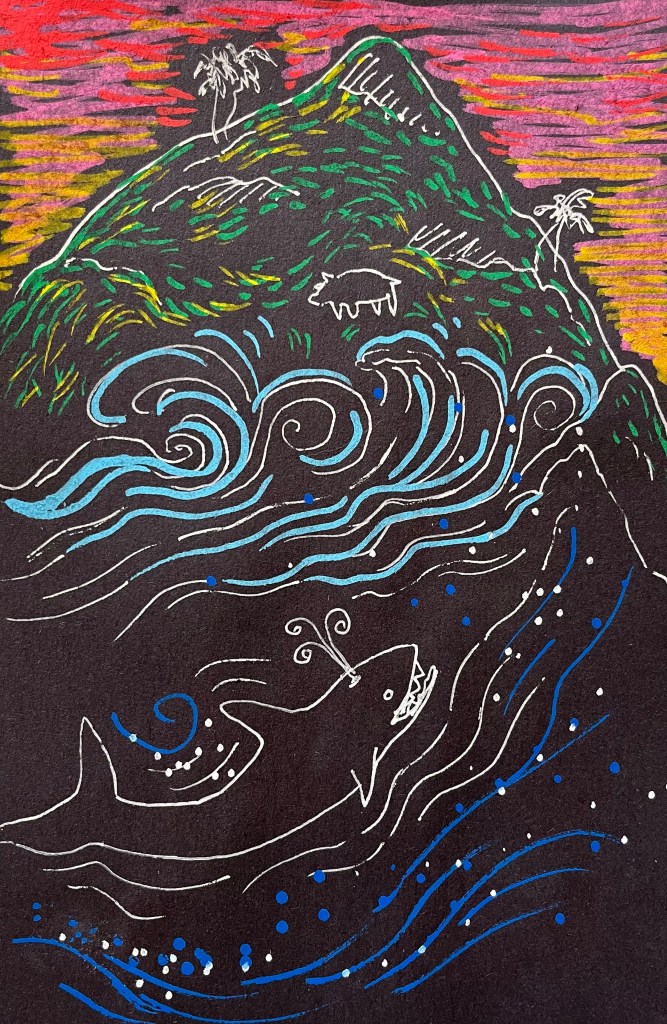 2/15/23 – Playing around with some new Posca opaque markers and colored construction paper.