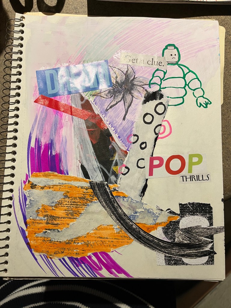 Worked on some fun collage images at last night’s @tacobelldrawingclub! Also a collab on a crossword puzzle with @zeegisbreathing 😁 #tacobelldrawingclub