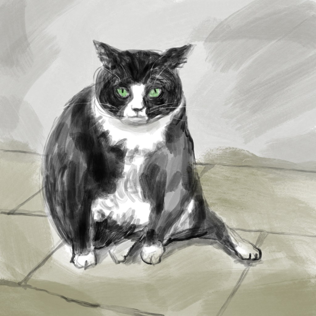 Was throughly charmed to learn about Gacek, a tubby Tuxedo cutie who’s now the top-rated tourist attraction in the Polish city of Szczecin! 😍 So of course I had to draw him—done on my iPad last night while watching the Kings lose to the Oilers in Game 2 of the playoffs 😑 Good thing Gacek was there to console me! ❤️
