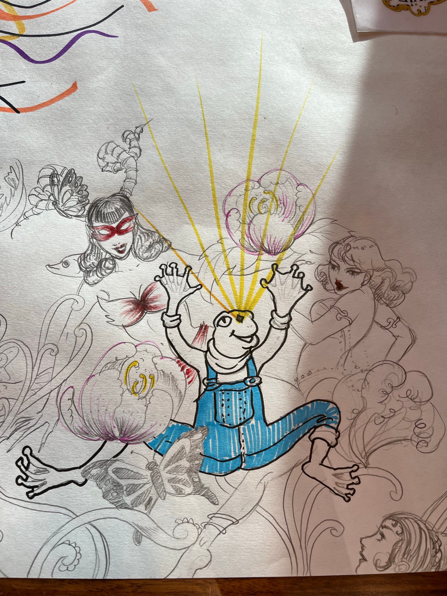 “Cosmic Frog Cavorts with Burlesque Ladies”, a fun doodle I did with @chromapoplbc at their Sketch Eazy event last Sunday. I really love these drawing hangouts! Thanks to @c.c.row.illustrations and @anna_katrina_art for being wonderful hosts and to @barenvie.lbc for letting us take over. #drawingclub #sketchclub