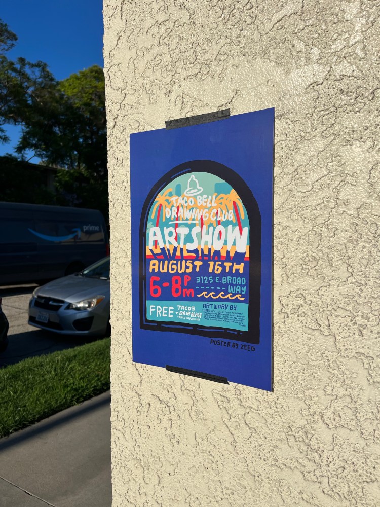 After 3+ years of meeting with this group, we (well Nick Zegel) managed to put an art show together! The turnout was fabulous, and Taco Bell corporate sent us a bunch of gift cards and swag to add to the festivities. Live mas!