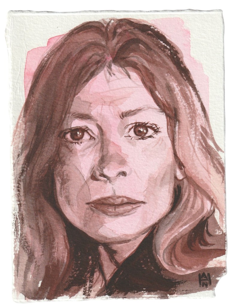 “Joan Didion”, watercolor on paper, 4.5” x 6”, part of my ICONS series. I really loved “The Year of Magical Thinking” #joandidion #writerportrait #womenwriters
