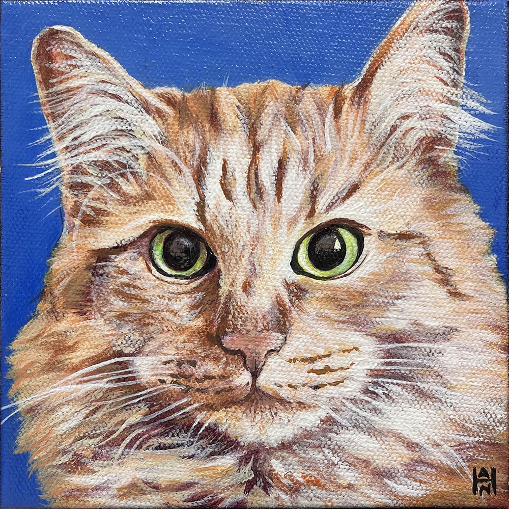“Sunny” (brother to Puffin), acrylic on canvas, 6×6. Another recent commission by good friend @cherieinoc ❤️😻🎨
