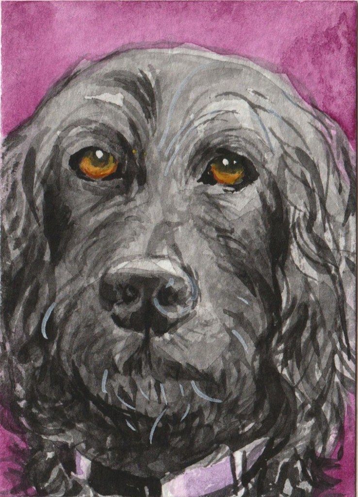 “Auggie”, 2.5 x 3.5, watercolor on paper. Another recent commission—loved capturing his soulful eyes and wild wavy hair 😁