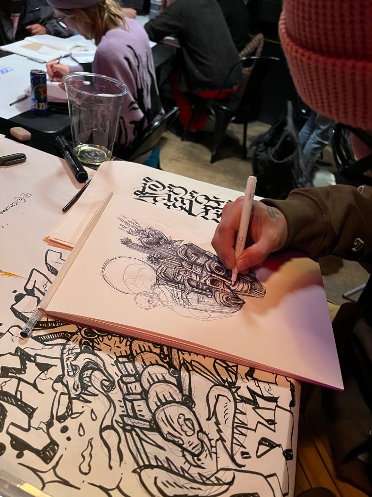 The first Ink & Drink meetup of the year was super-fun! So many great artists doing their thing. Great to see some Artclout Drink and Draw folks in the mix as well. π