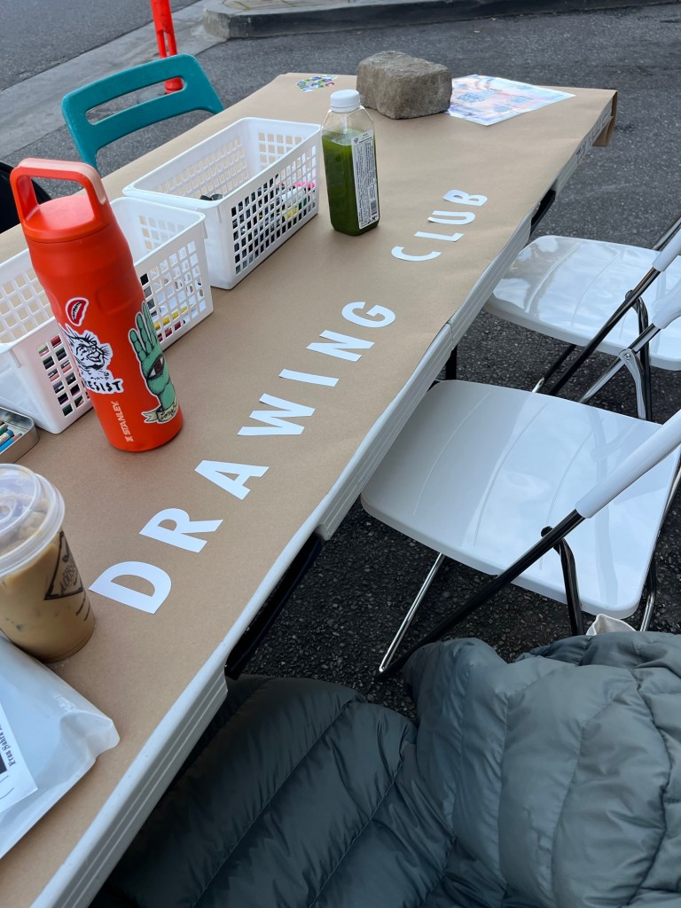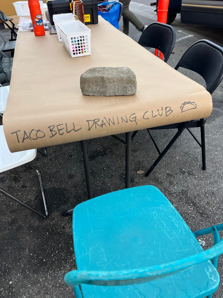 The Taco Bell Drawing Club was invited by Studio 111 to participate in the Art + Design Walk Park(ing) Day Pop-up in DTLB this past Saturday. So Nick Zegel and I got some tables and chairs together and provided a drawing station open to all. It was an epic day filled with drawing with new and old friends and seeing the creative community out in force in our city. I also met a budding artist named Lola and we traded portraits.
