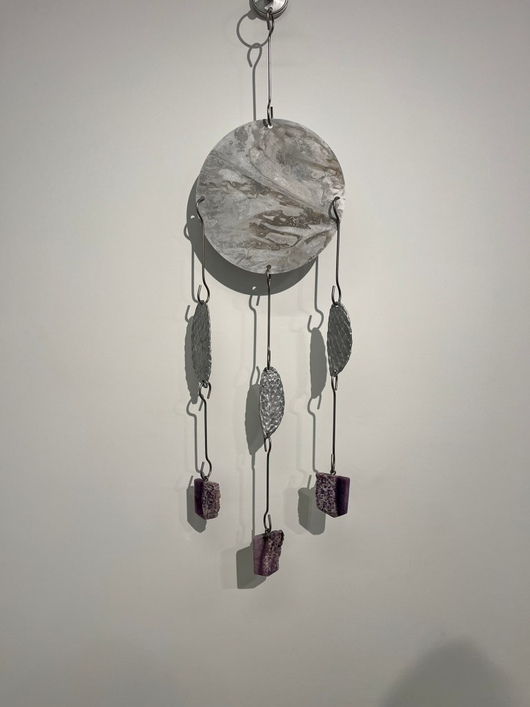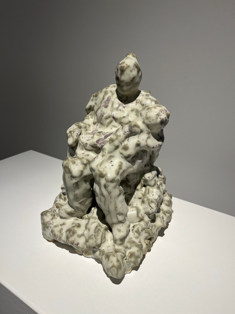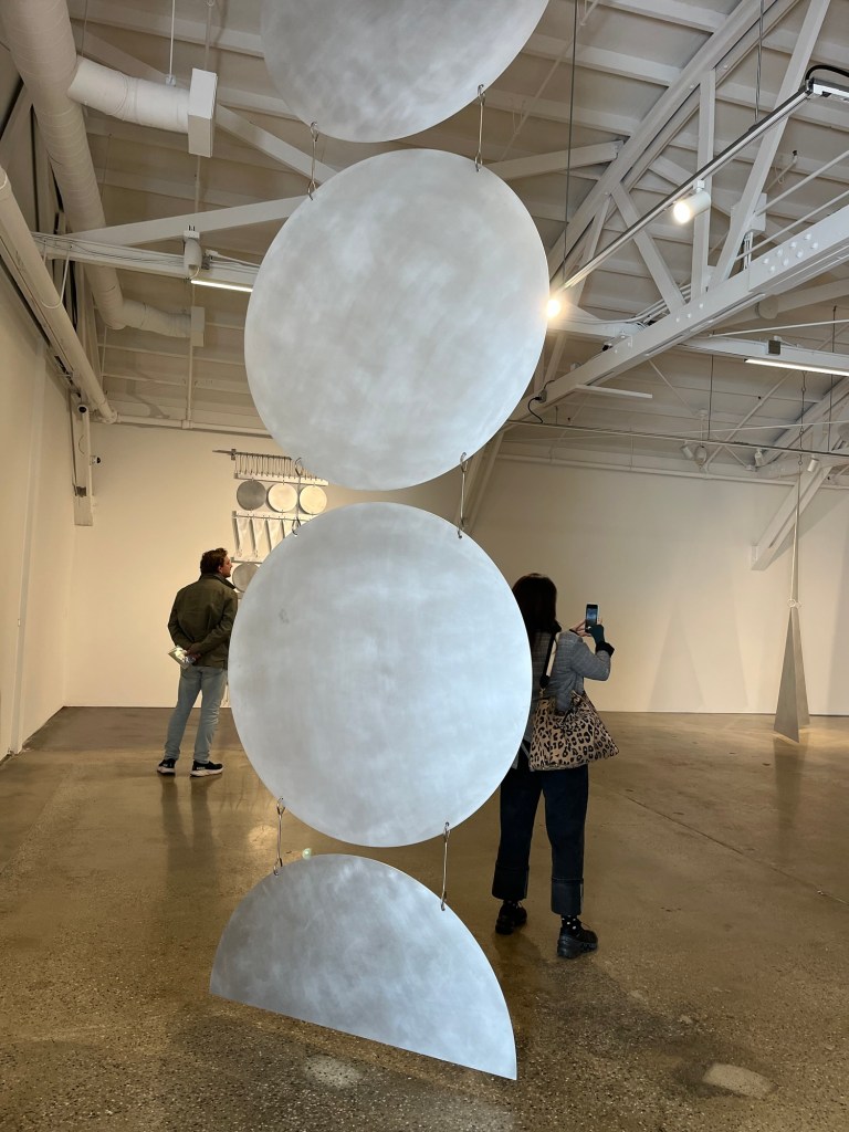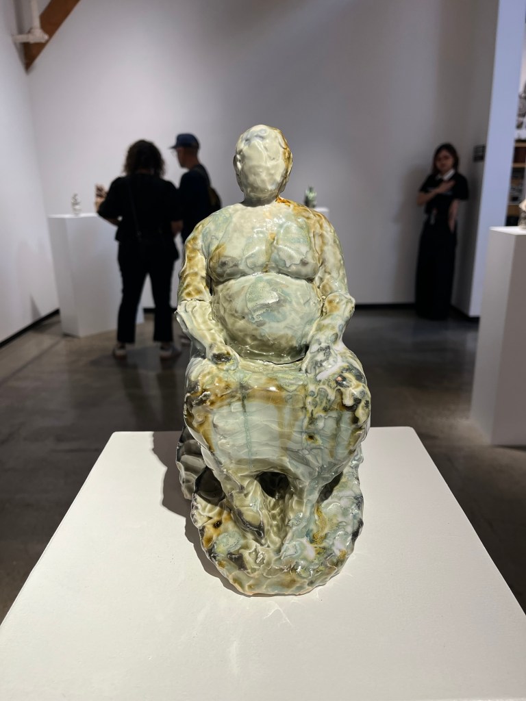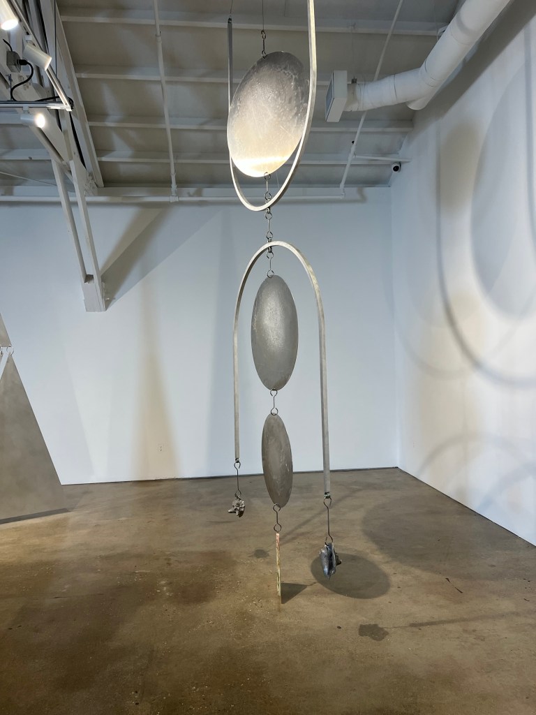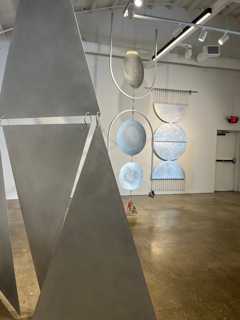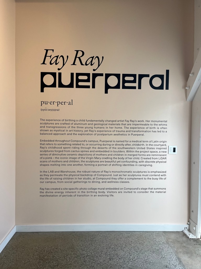 Made it to the reception for the latest show at Compound, a great art/food/community venue in Long Beach. I was not familiar with Fay Ray before the show, so it was great to learn of a new woman artist. I thought her work was very impressive. She showed large-scale metal sculptures that looked like magnified jewelry, as well as small ceramic maternal figures.