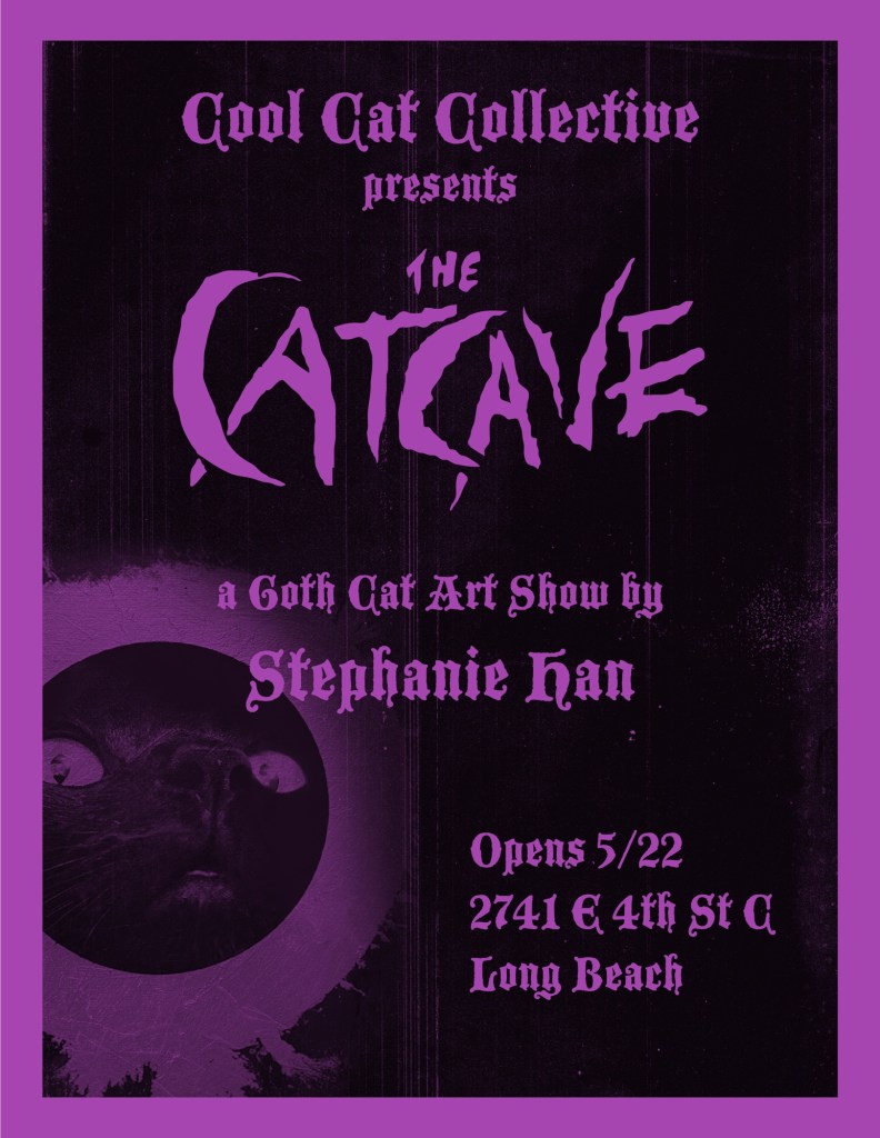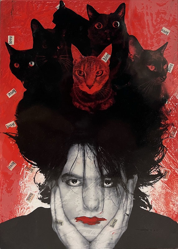 Having a mini goth cat art show “The Cat Cave” at @coolcatcollectivelbc starting 5/22, to coincide with #worldgothday 🖤 See four mixed media pieces inspired by The Cure, Siouxsie and the Banshees, and Bauhaus, made better with cats! 😄 Originals and prints will be for sale.