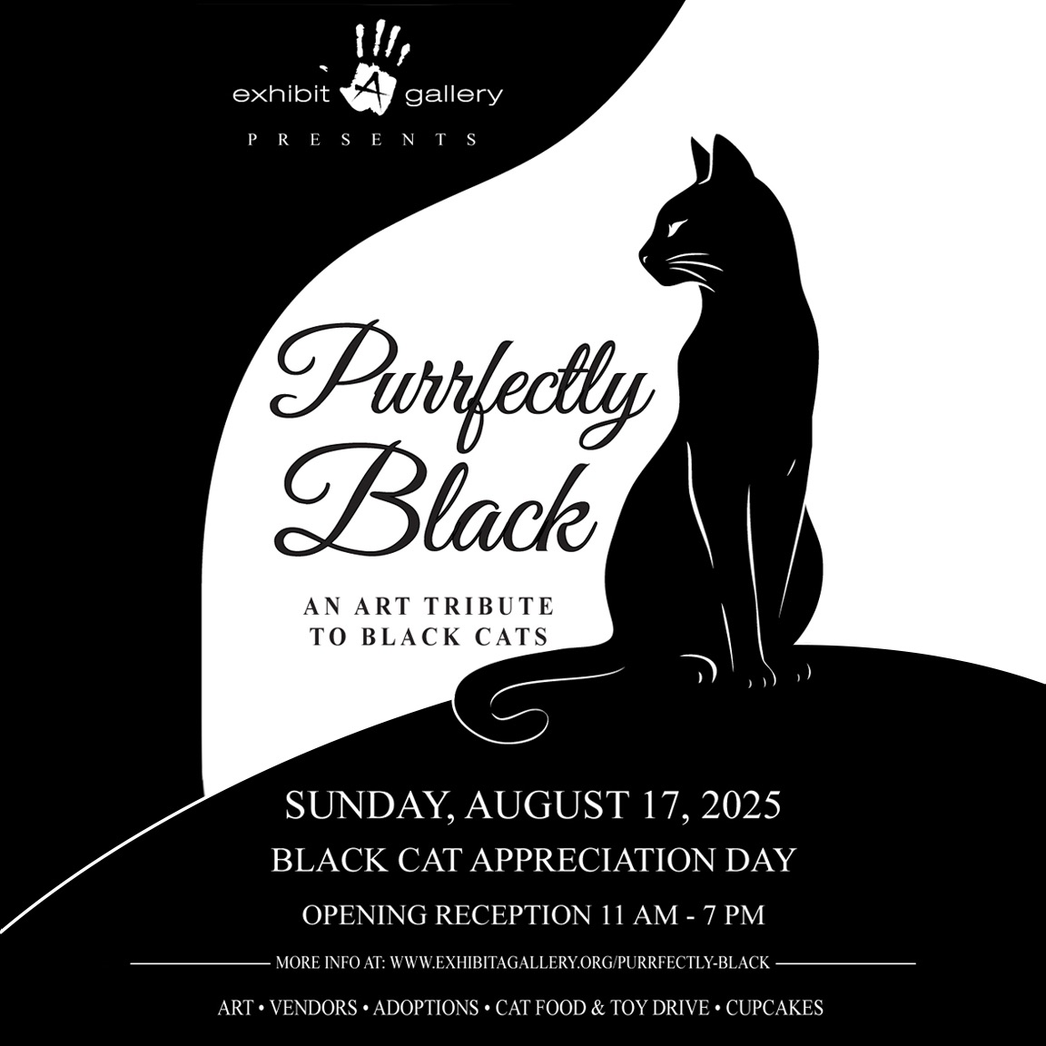 Bring your friends, see amazing black cat art, adopt a cat, shop local, and help us honor the beauty and charm of black cats in the best way possible! We hope to see you there! RSVP LINK: https://www.exhibitagallery.org/purrfectly-black