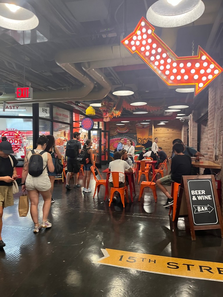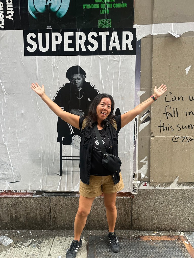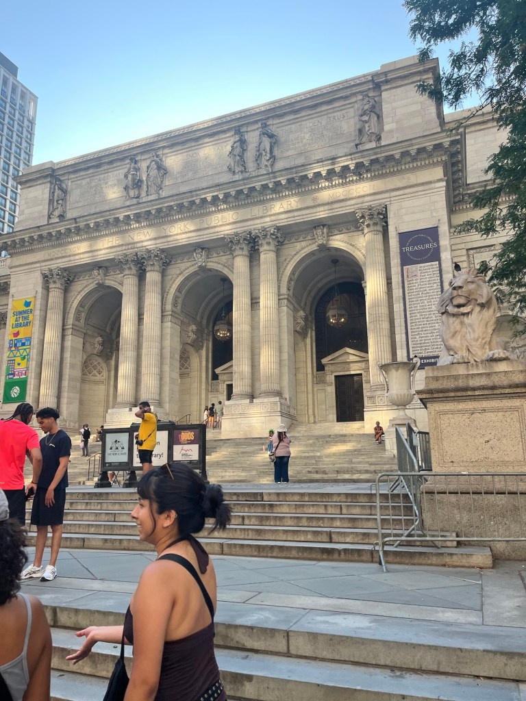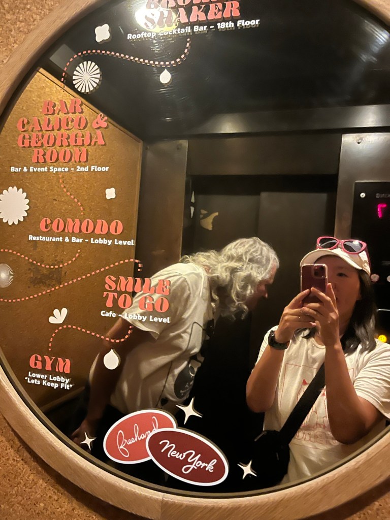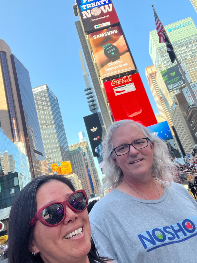 We got into town about mid-afternoon—temps were in the high 90s, with what felt like 1000% humidity, oof. 🥵 We were ready for a walk, though, after 7 or so hours of sitting on planes and buses, so we ventured out to the area around our hotel, which just happened to be Times Square. As you can imagine, it was tourist central. Neither of us had been to NY during the high summer tourist season, so we were unprepared for the sheer press of humanity and the heat.