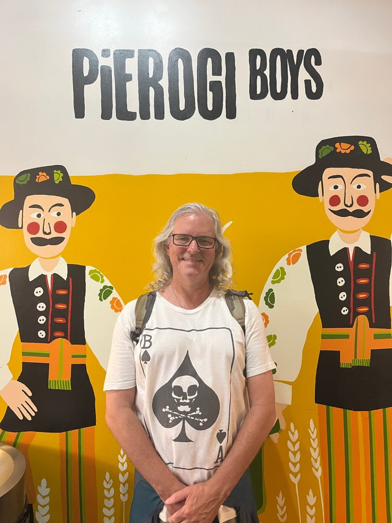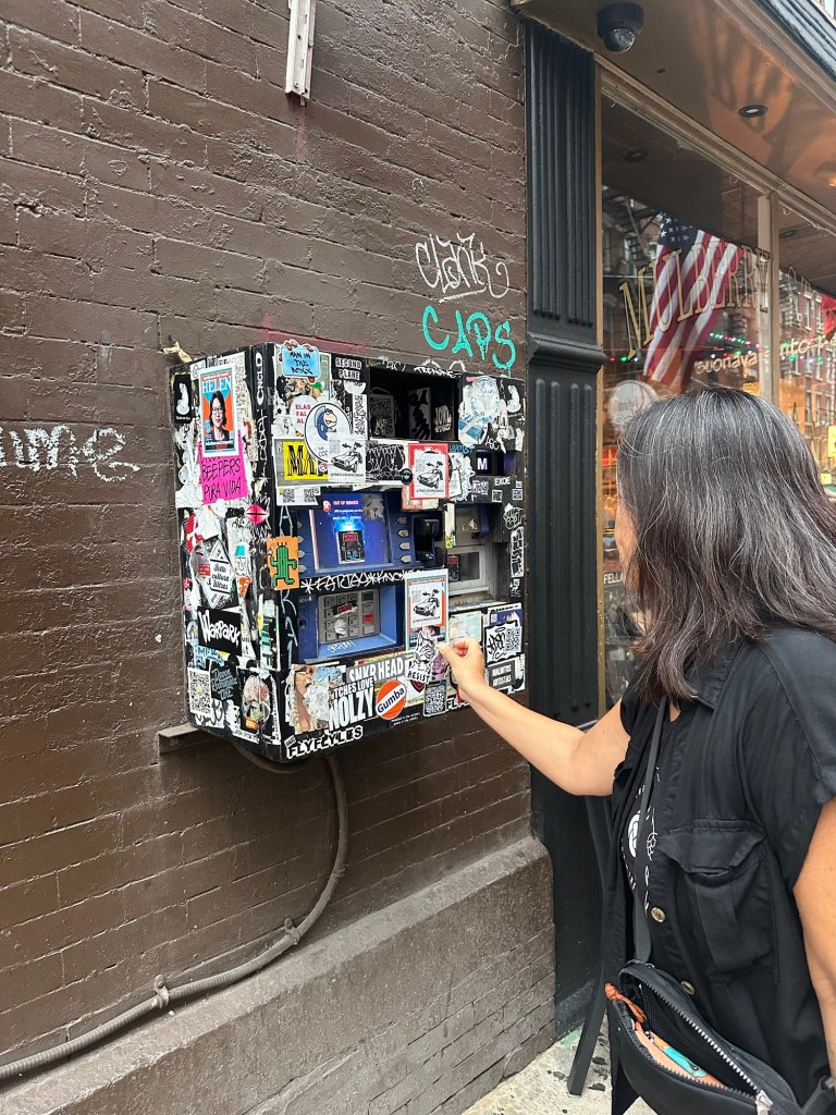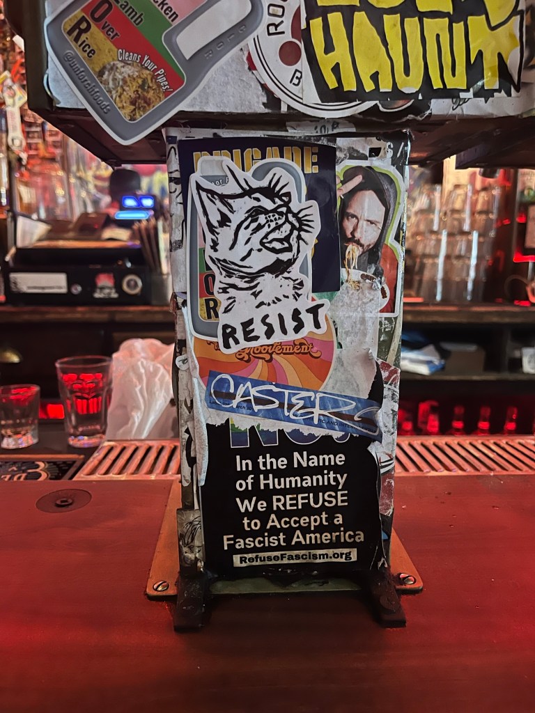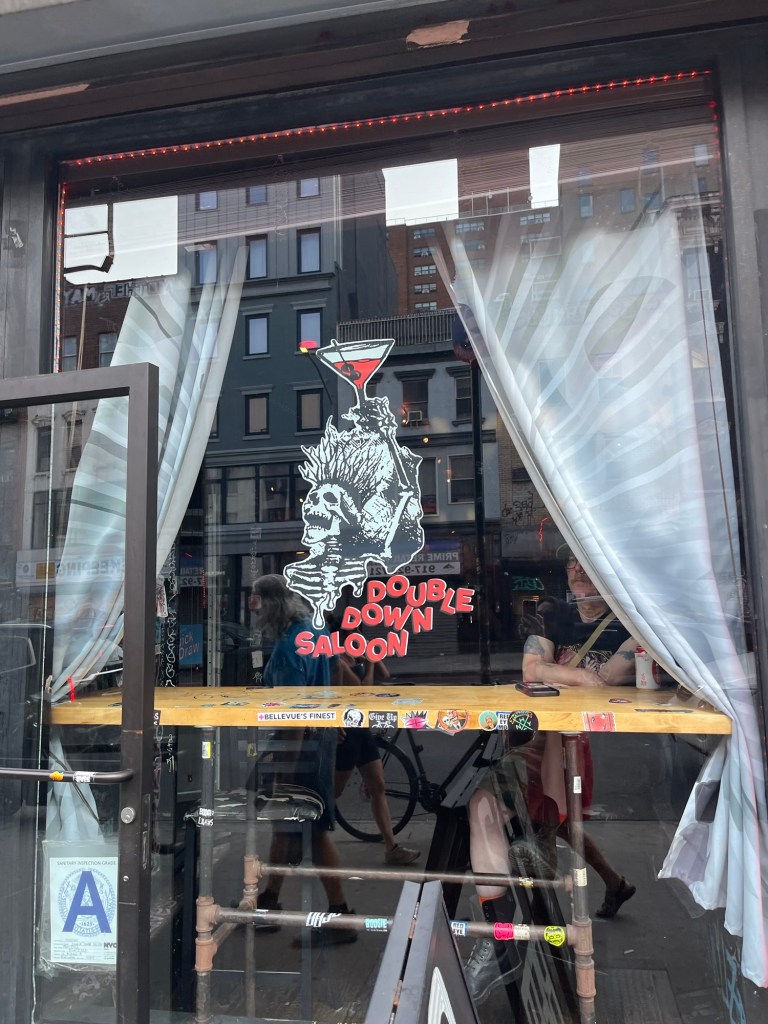 After the long walk, we were ready for some libations and a a break from the crowds. We’re fans of dive bars, and found the East Village to be fertile ground. Our first stop was at The Clockwork Bar, a tiny no-frills watering hole festooned with graffiti and stickers, with punk music on heavy rotation—perfect.