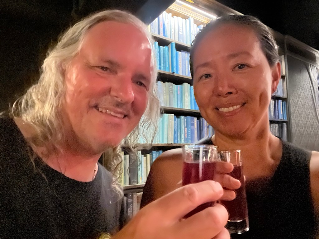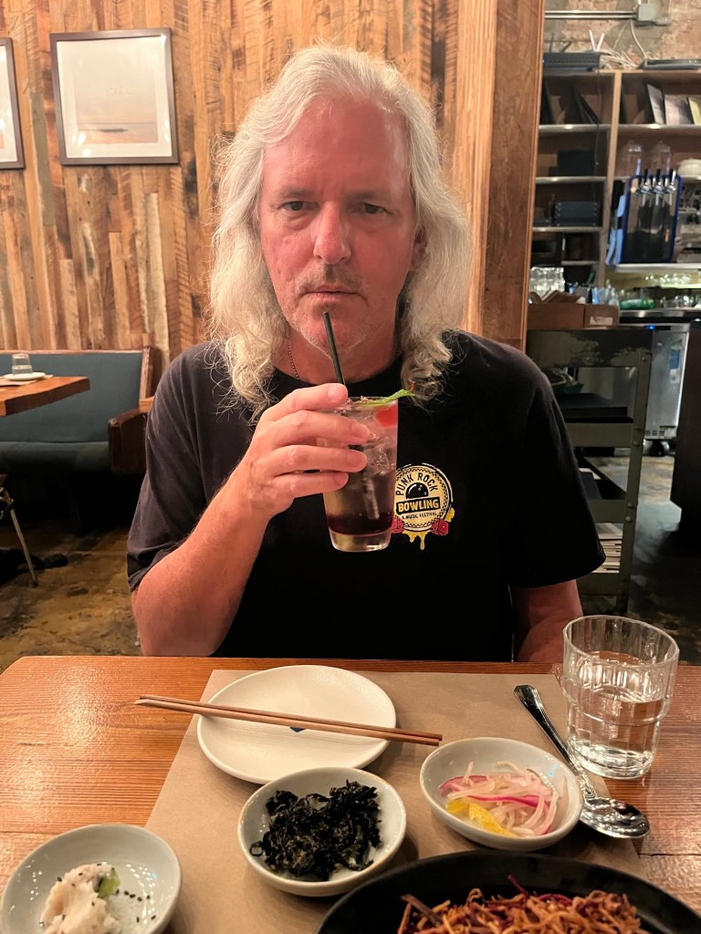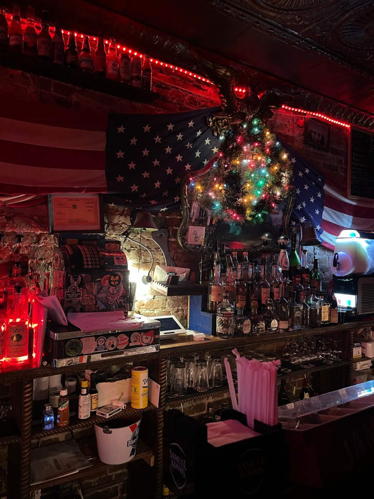 Finally, a nightcap at a dive bar around the corner from our hotel—a place called Blue Ruin. We liked the atmosphere, but their sound system kept cutting out. 😑