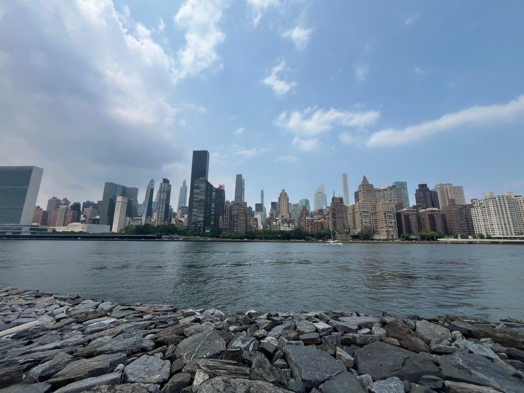 Roosevelt Island was first on the agenda for the day. Neither of us had been—I happened to see it on the map and thought it looked interesting. We saw that there was a tram to the island in the movie Problemista and wanted to try it. 😆