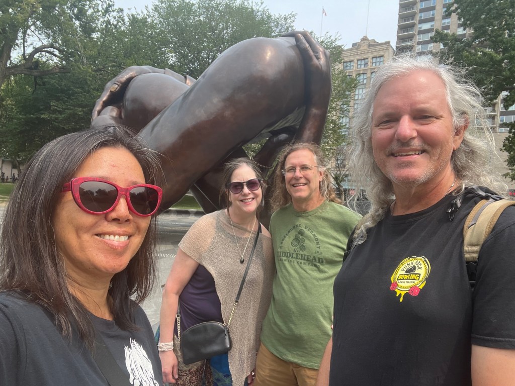Made it to Boston Common, in front of the new MLK and Coretta Scott King Memorial called “The Embrace”. which has generated some controversy.