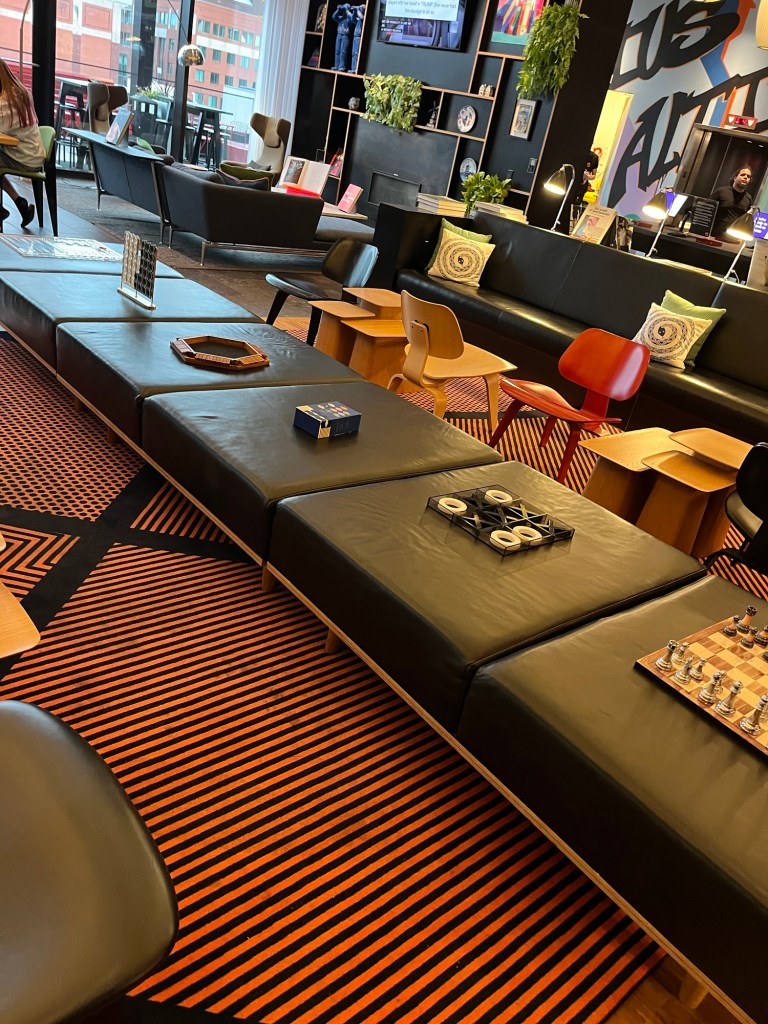 We stayed at the modern, artsy, and fun citizen M hotel in the West End area of Boston, conveniently located right next to a train station and within walking distance to many notable sights. Up till now we’ve been staying at various serviceable but not very interesting hotels, so this was a nice change.