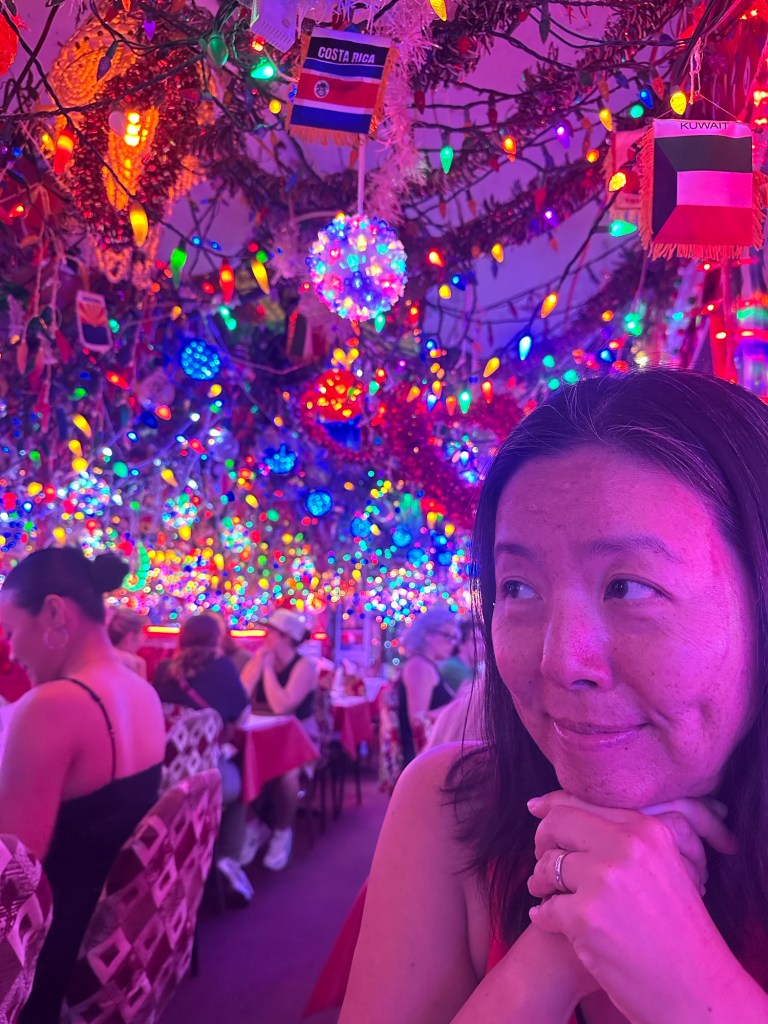 After that a zag to our second food stop: Panna II, another rec from friends. A small, wacky Indian restaurant with LOTS of lights and tchotchkes everywhere. Pretty good food, though.