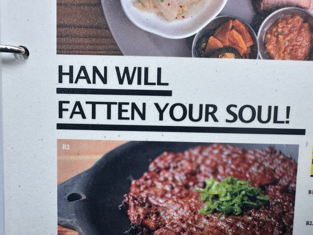 We made our way south toward Manhattan’s Ktown, which had really expanded even since my last visit in 2014. There was even an H Mart (where I got a couple of really sad peaches)! But the real reason we wanted to go there was to check out the place below, for obvious reasons 😄: