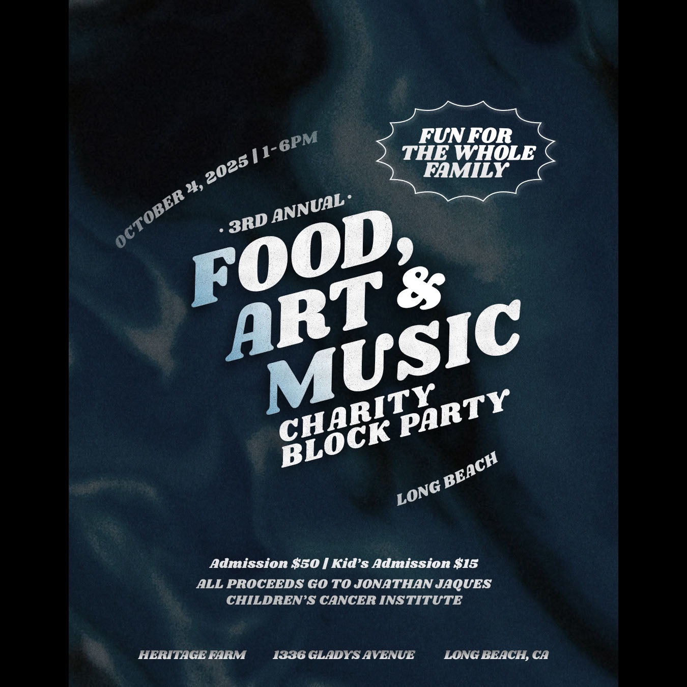 Get ready for our biggest and best FAM Festival yet! It’s transformed into a full Charity Block Party! Join us for a day packed with fun, food, art, and music all to benefit the Jonathan Jaques Children’s Cancer Institute.
