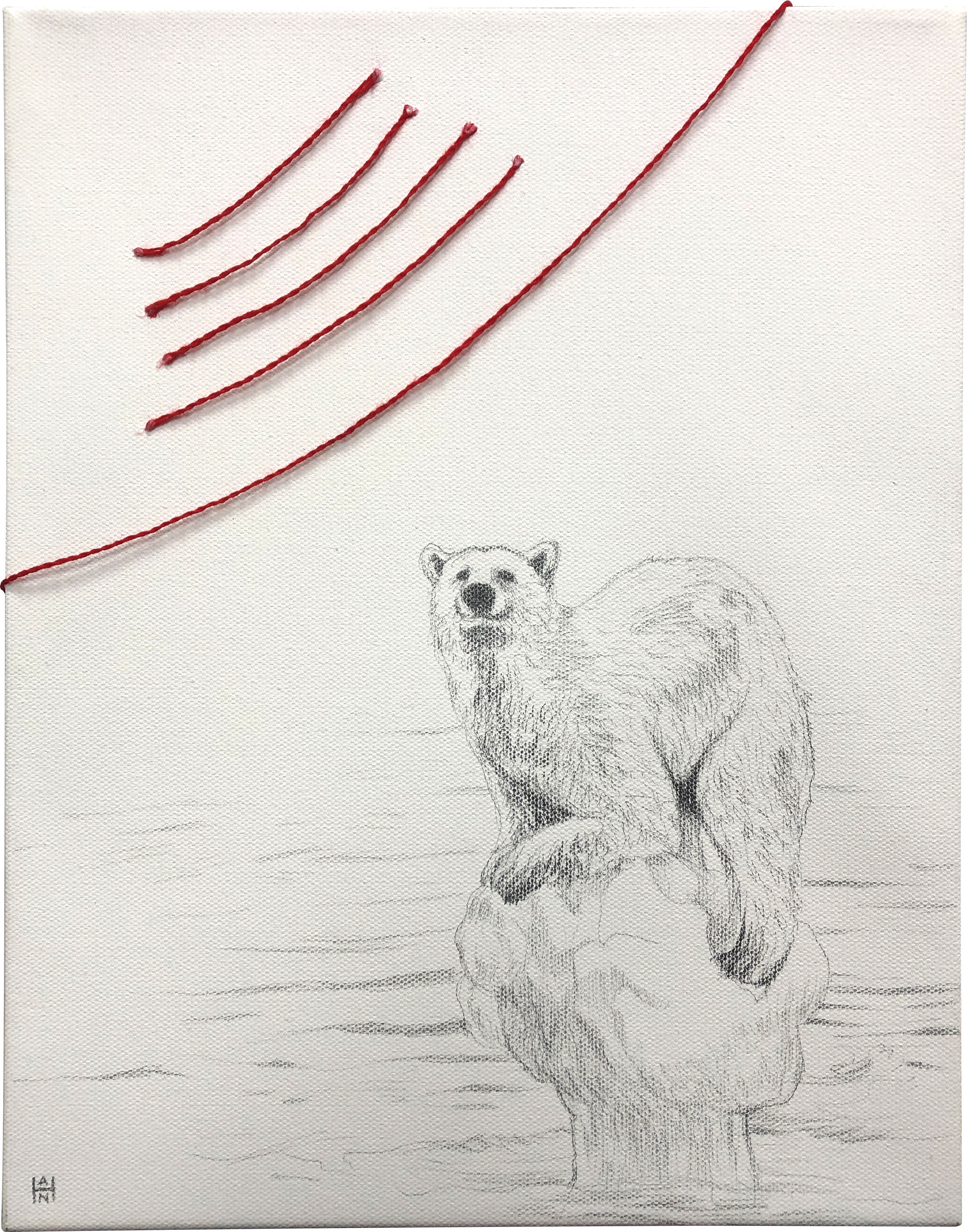 “David and Goliath”, Graphite and yarn on canvas, 8×10 – SOLD“Polar Vortex”, Graphite and yarn on canvas,11×14