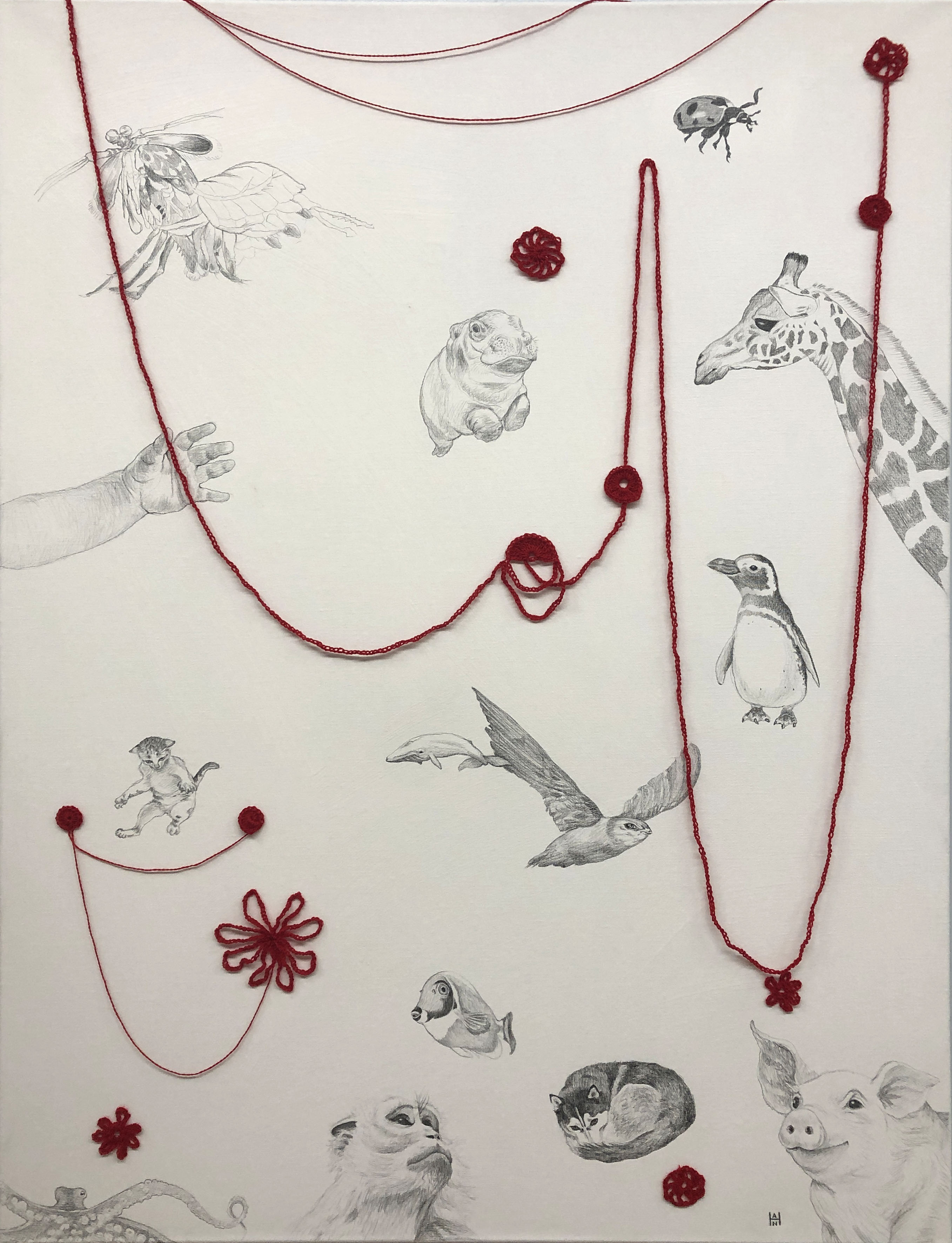Blood+Lines is a series born during the pandemic. I started thinking about how interconnected all the living creatures are on this planet, and that it’s time to see that the line “separating” us from other animals is actually a connector. Series is still in progress.