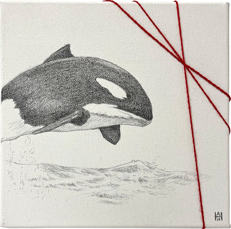 “Fly Free Lolita”, Graphite and yarn on canvas, 8×8