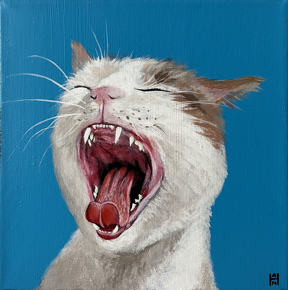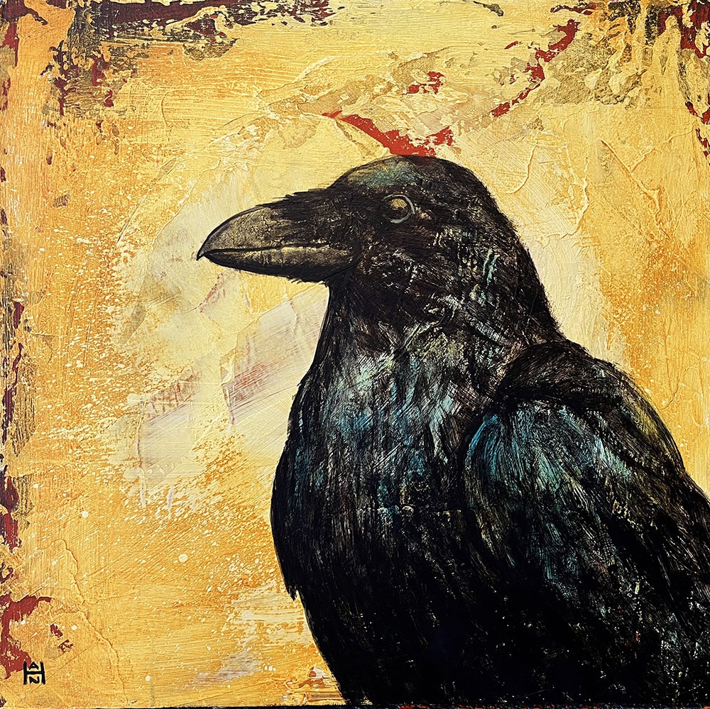 Golden Fox 2, acrylic on canvas, 12″ x 16″, $400Raven Profile, acrylic on canvas, 12″ x 12″, $300White Raven, acrylic on canvas, 12″ x 12″, $300Finches 2 – Gossip, acrylic on canvas, 8″ x 12″, $350Raven Flight, acrylic on canvas, 14″ x 14″, $350Annhiliator, acrylic on canvas, 8 x 8, $300Finches 1 – Matriarch, acrylic on canvas, 8″ x 12″, $350Widowmaker, acrylic on canvas, 8 x 8, $300Berserker, acrylic on canvas, 8 x 8, $300