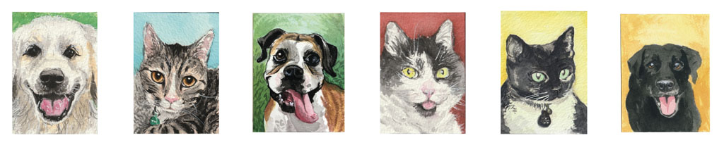 These are the standard sizes/mediums/prices that I offer, but I can also do custom work outside of these, if desired. All prices include tax; shipping & handling are extra.
