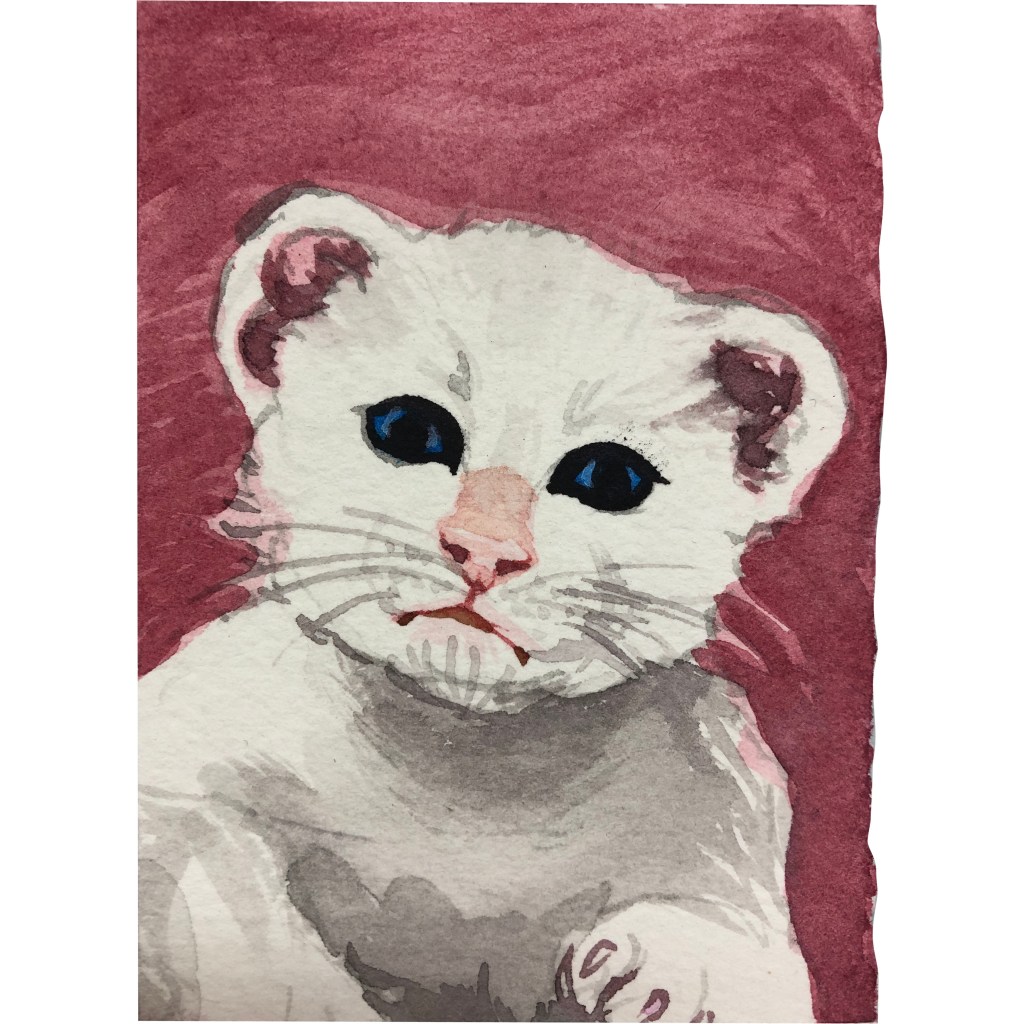 SMOL Portraits of rescue kittens, watercolor on paper, all approx. 2″ x 3″ Share this: Click to share on Facebook (Opens in new window) Facebook Click to share on X (Opens in new window) X Click to email a link to a friend (Opens in new window) Email Click to print (Opens in new window) Print Like Loading...